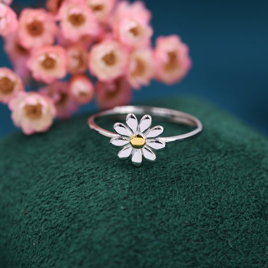 Sterling Silver Daisy Ring, Adjustable Size, Daisy Flower Ring, Dainty and Delicate