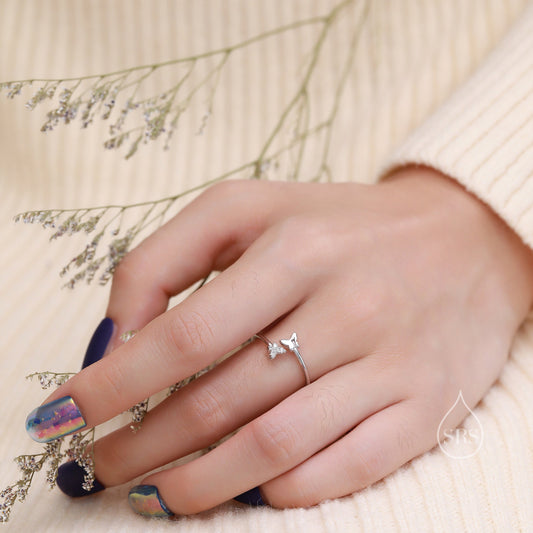 Double Butterfly Open Ring in Sterling Silver, Adjustable, Butterfly Ring, Open Ring, Butterfly CZ Ring