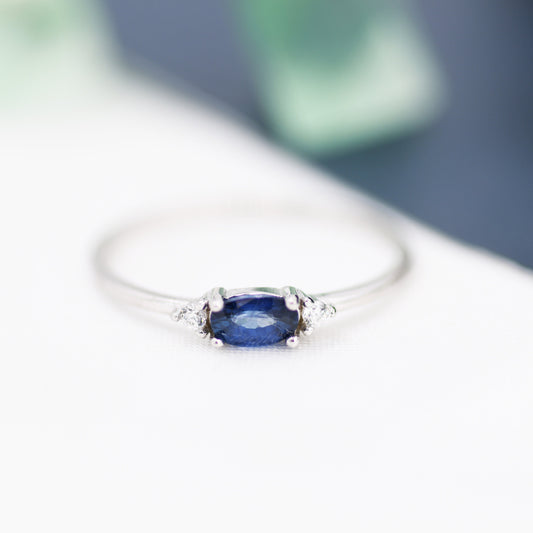 Natural Sapphire Ring in Sterling Silver, Genuine Blue Sapphire Ring, Dainty Gemstone Ring, US 5-8