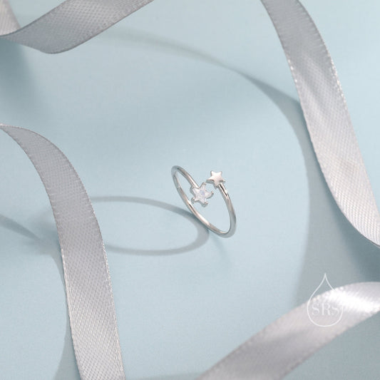 Double Star Open Ring in Sterling Silver, Adjustable, Star Ring, Celestial Jewellery, Stars