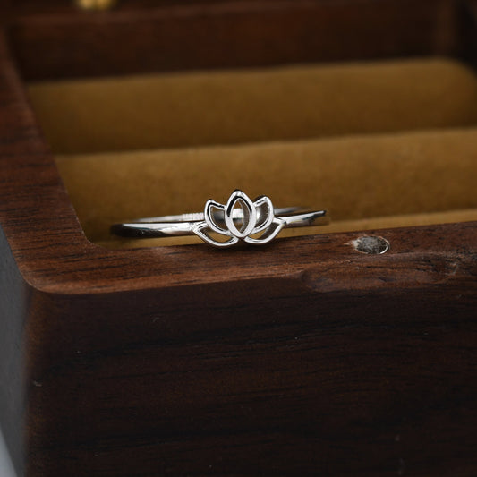 Sterling Silver Tiny Lotus Flower Ring, Adjustable Size, Delicate Lotus Ring, Lotus Flower Ring