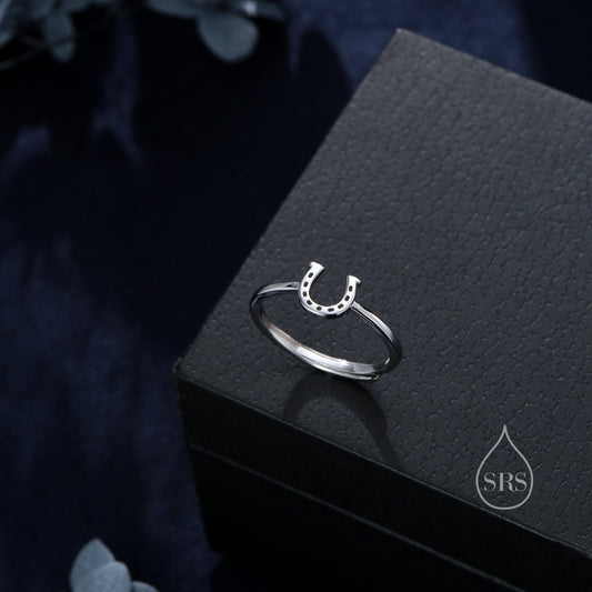 Sterling Silver Cute Little Horseshoe Ring, Adjustable Size, Cute Horseshoe Ring, Dainty and Delicate, Lucky Horse Shoe Ring