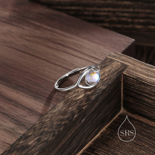 Sterling Silver Moonstone Eye Ring, Simulated Moonstone Evil Eye Ring, Adjustable Size