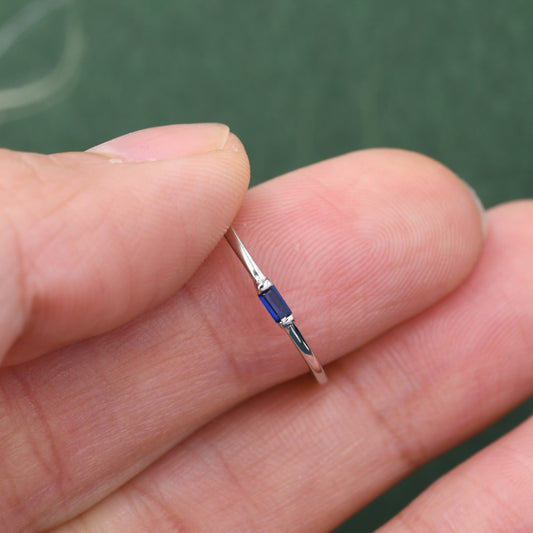 Sapphire Blue Tiny Baguette CZ Ring in Sterling Silver, Silver or Gold, Minimalist 2x4mm Single Baguette CZ Ring US 5 - 8