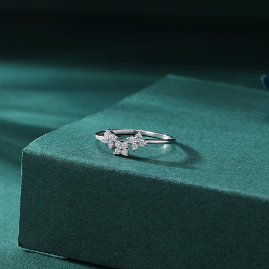 Hydrangea Bouquet CZ Flower Ring in Sterling Silver, US Size 5 -8, Four Crystal Flower Ring, Tiny CZ Ring