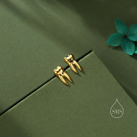 Teeth Earrings in Sterling Silver, Molar Stud Earrings, Silver or Gold, Silver Tooth Stud Earrings, Cute and Quirky Earrings