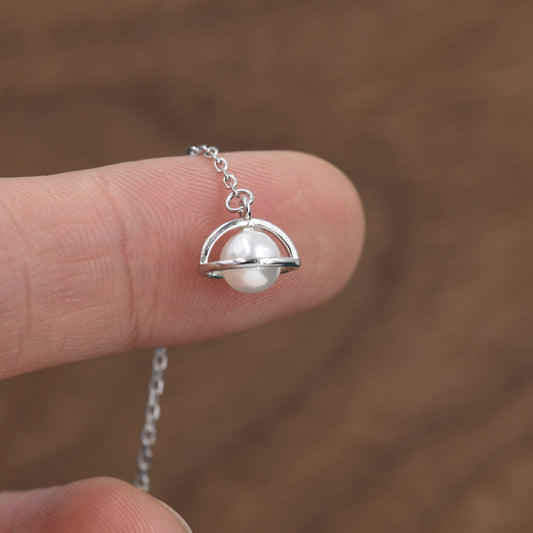 Atom Pendant Necklace Sterling Silver with Simulated Moonstone, Silver or Gold or Rose Gold, Atom Necklace, Science Jewellery,Scientist Gift
