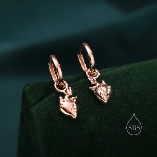 Anatomical Heart Huggie Hoop Earrings in Sterling Silver, Silver or Gold or Rose Gold, Beating Heart Hoop Earrings, Realistic Heart Earrings