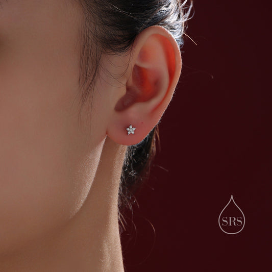 Very Tiny Flower CZ Screw Back Earrings in Sterling Silver, Forget Me Not Floral CZ Earrings, Silver or Gold, Flower CZ Earrings