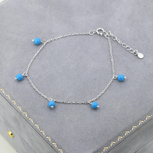 Blue Turquoise Bracelet in Sterling Silver, Blue Turquoise Beaded Bracelet, Colour Enhanced Natural Turquoise Bracelet