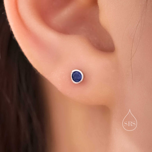 Sapphire Blue CZ Bezel Stud Earrings in Sterling Silver, Available in 3mm, 4mm, 5mm, Brilliant Cut CZ Earrings, Minimal CZ Stud