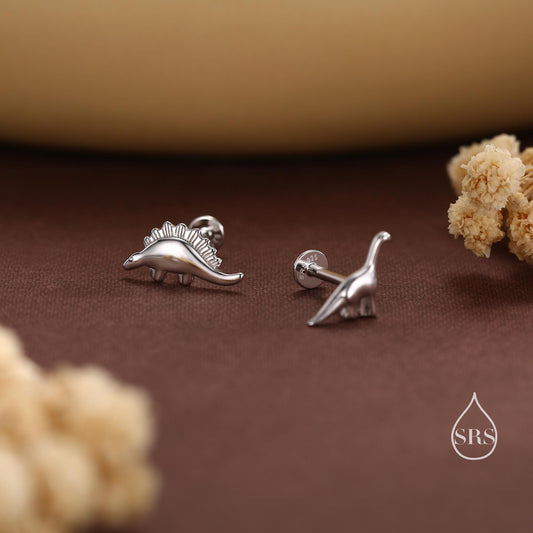 Mismatched Dinosaur Internally Threaded Flat Back /Screw Back / Stud Earrings in Sterling Silver, Silver or Gold or Rose Gold, Asymmetric