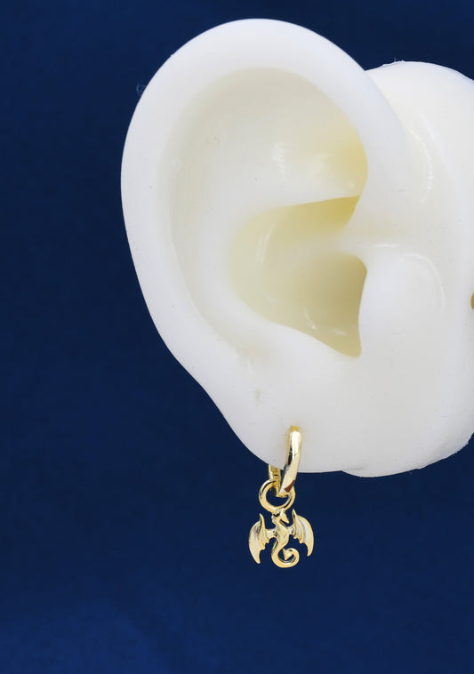 Dragon Huggie Hoop in Sterling Silver, Silver or Gold, Dagon Dangle Hoop Earrings, Detachable and Interchangeable