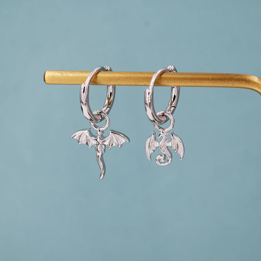 Mismatched Tiny Dragon Huggie Hoop in Sterling Silver, Silver or Gold or Rose Gold, Asymmetric, Detachable and Interchangeable
