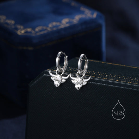 Highland Cow Huggie Hoops in Sterling Silver, Silver or Gold or Rose Gold, Highland Cow Earrings, Detachable Hoops
