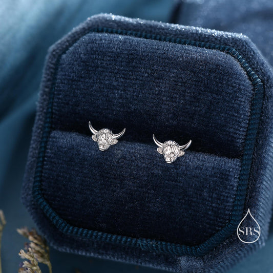 Highland Cow Stud Earrings in Sterling Silver, Cow Stud, Bull Earrings, Petite Earrings, Small Cow Stud, Scotland, Scottish