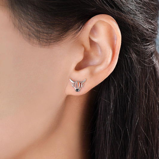Highland Cow Stud Earrings in Sterling Silver, Silver, Gold or Rose Gold, Bull Earrings, Cow Earrings