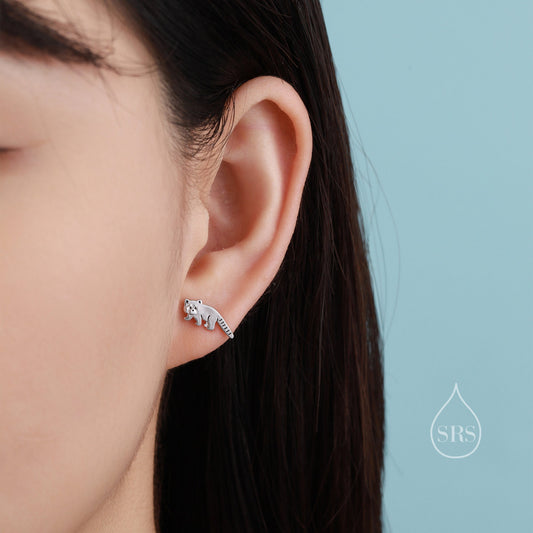 Sterling Silver Polar Bear Stud Earrings, Silver Polar Bear Earrings, Bear Earrings, Tiny Polar Bear Stud, Cute Polar Bear Stud Earrings