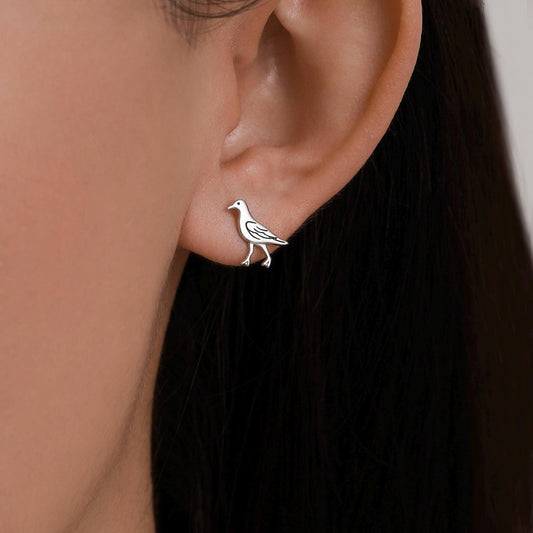Cute Pigeon Bird Stud Earrings in Sterling Silver