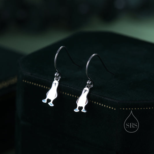 Sterling Silver Blue Footed Boobie Drop Hook Earrings, Tiny Blue-Footed Boobie Bird Dangle Earrings, Cute, Fun and Quirky Bird Jewellery