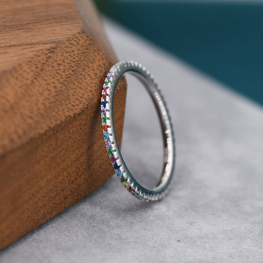 Skinny Rainbow Crystal Pave Ring in Sterling Silver, Gold Vermeil Crystal Pave Ring, Stacking Rings, Eternity Ring, US 5 - 8
