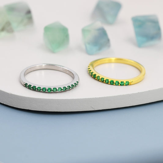 Emerald Green Half Eternity Ring in Sterling Silver, Silver or Gold, Green Emerald CZ Skinny Ring, Minimalist Stacking Ring US 5 - 8