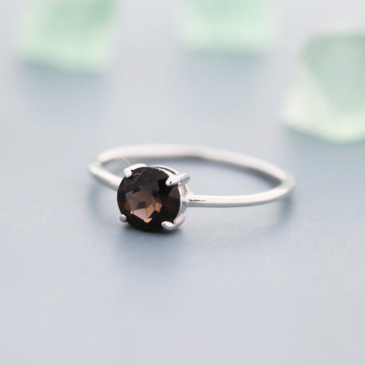 Genuine 1Ct Smoky Quartz Ring in Sterling Silver, Natural Brilliant Cut Smoky Quartz Ring, Stacking Rings, US 5-8