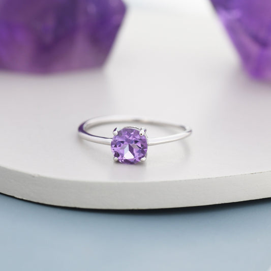 Genuine 1Ct Amethyst Crystal Ring in Sterling Silver, Natural Brilliant Cut Citrine Stone Ring, Stacking Rings, US 5-8