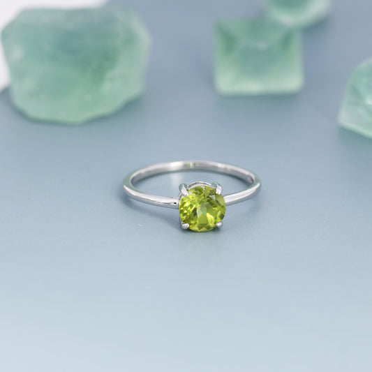 Genuine 1Ct Peridot Ring in Sterling Silver, Natural Brilliant Cut Peridot Stone Ring, Stacking Rings, US 5-8