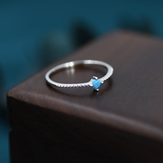 December Birthstone Turquoise Ring in Sterling Silver, Delicate Stacking Ring, Skinny Band, Size US 6 - 8, December Birthstone