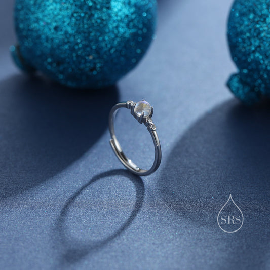 Tiny Moonstone Ring in Sterling Silver, Adjustable Size, 4mm Moonstone Ring, Prong Set, Lab Moonstone Ring, Delicate Stacking Ring,