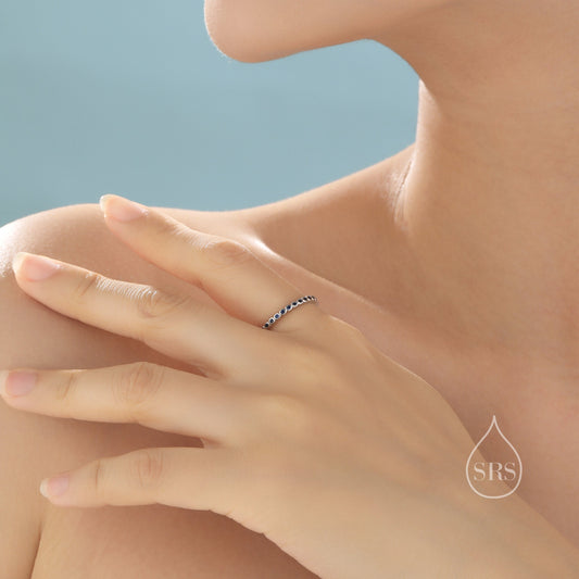 Sapphire Blue CZ Skinny Crystal Band Ring in Sterling Silver, Gold Vermeil Crystal Pave Ring, Stacking Rings, US 5 - 8