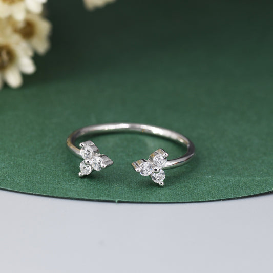 Sterling Silver Three Dot CZ Ring, Adjustable Sized Ring, Trinity Ring, Open Ring, Stacking Rings