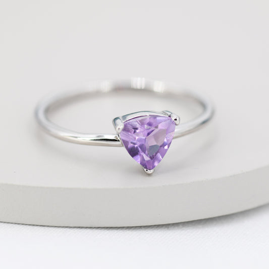 Genuine Amethyst Ring in Sterling Silver, Natural Trillion Cut Amethyst Stone Ring, Stacking Rings, US 5-8