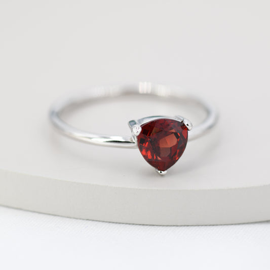 Genuine Garnet Ring in Sterling Silver, Natural Trillion Cut Red Garnet Ring, Stacking Rings, US 5-8
