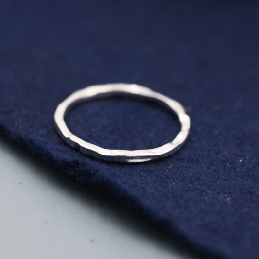 Sterling Silver Hammered Skinny Ring, Very Skinny Delicate Ring Band, Stacking Ring US 5-8, Wave Ring