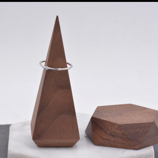 Sterling Silver Minimalist Skinny Ring, Stacking Ring, Single CZ Crystal, Simulated Diamond Ring. Adjustable Size. E94