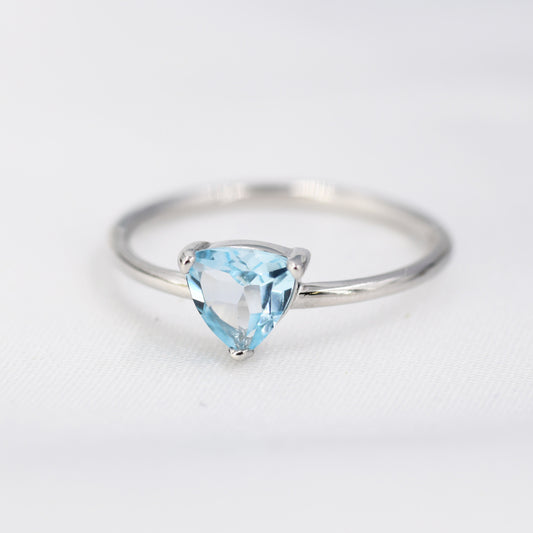 Genuine Blue Topaz Ring in Sterling Silver, Natural Trillion Cut Swiss Blue Topaz Ring, Stacking Rings, US 5-8