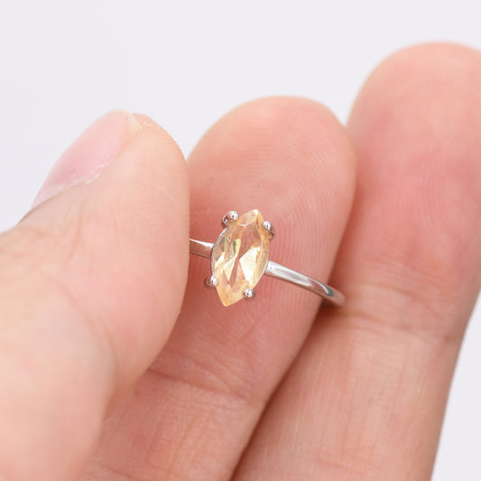 Genuine Yellow Citrine Ring in Sterling Silver, Natural Marquise Cut Citrine Stone Ring, Stacking Rings, US 5-8