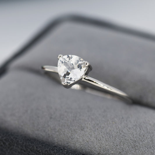 Genuine White Topaz Ring in Sterling Silver, Natural Trillion Cut Stone Ring, Stacking Rings, US 5-8