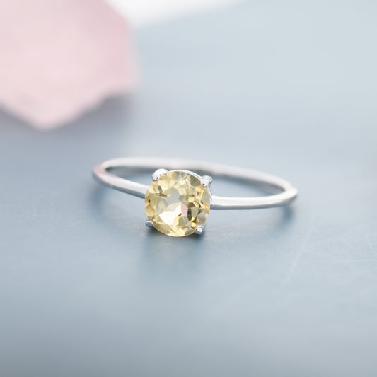 Genuine 1Ct Citrine Crystal Ring in Sterling Silver, Natural Brilliant Cut Citrine Stone Ring, Stacking Rings, US 5-8