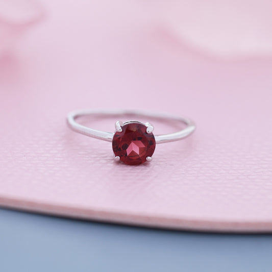 Genuine 1Ct Garnet Ring in Sterling Silver, Natural Brilliant Cut Garnet Ring, Stacking Rings, US 5-8