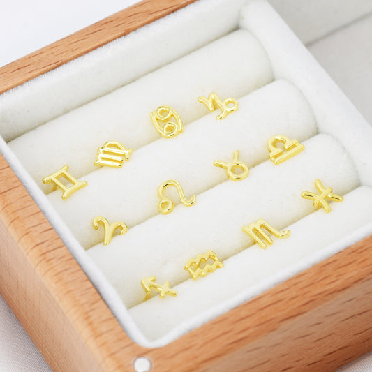 Pair of Zodiac Stud Earring in Sterling Silver, Silver or Gold, Horoscope Earrings