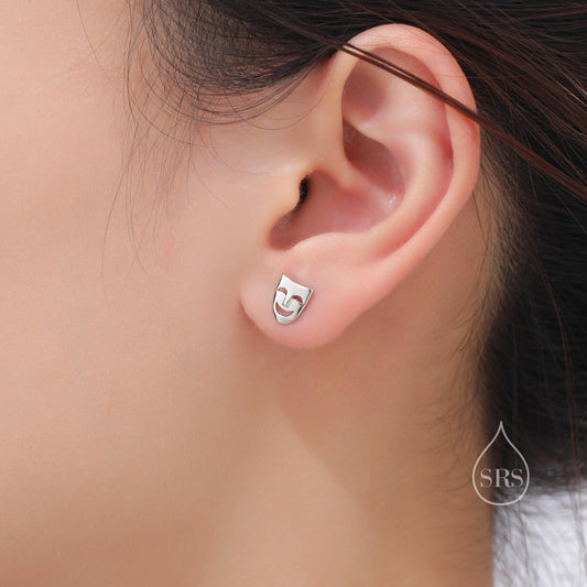 Theatre Mask Stud Earrings in Sterling Silver, Silver or Gold or Rose Gold, Asymmetric Comedy Tragedy Earrings, Mismatched Mask Earrings
