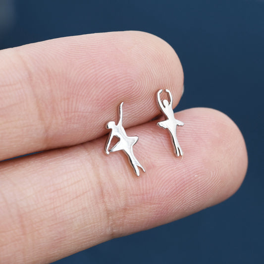 Extra Tiny Ballerina Stud Earrings in Sterling Silver, Silver, Gold or Rose Gold, Dancer Earrings, Ballet Dancer Earrings
