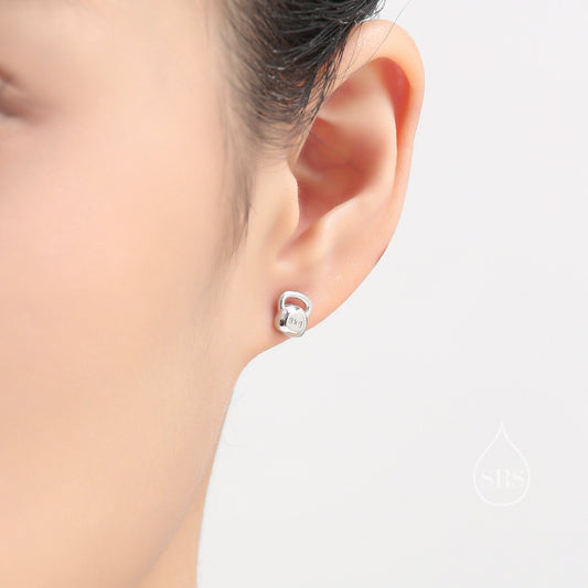 Sterling Silver Kettlebell Stud Earrings, Silver, Gold or Rose Gold, Gym Kettlebell Stud Earrings, Fun Earrings, Exercise Lover Earrings