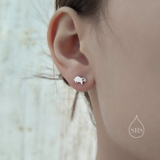 Extra Tiny Badger Stud Earrings in Sterling Silver, Silver or Gold, Sterling Silver Badger Earrings, Nature Inspired, Farm Earrings