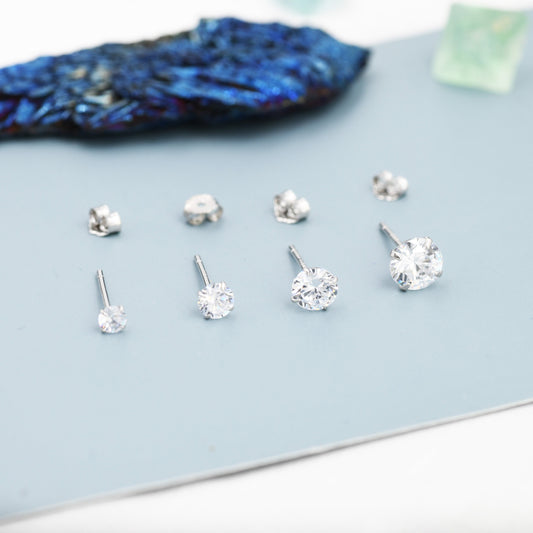 Simple CZ Crystal Stud Earrings in Sterling Silver, 3mm, 4mm, 5mm and 6mm, Various Sizes, Minimalist CZ Stud