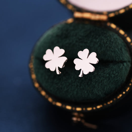 Four Leaf Clover Stud Earrings in Sterling Silver, Irish Earrings, Silver Gold or Rose Gold