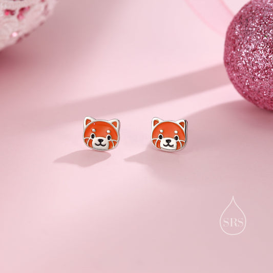 Enamel Cute Red Panda Stud Earrings in Sterling Silver, Smiling Red Panda Stud, Red Panda Earrings, Panda Bear Earrings